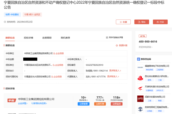 [2022-03-24]测绘院成功中标2022年宁夏回族自治区自然资源统一确权登记项目3月21日,在宁夏回族自治区自然资源和不动产确权登记中心组织的“2022年宁夏回族自治区自然资源统一确权登记项目”公开招标活动中,中陕核工业集团测绘院有限公司成功中标...