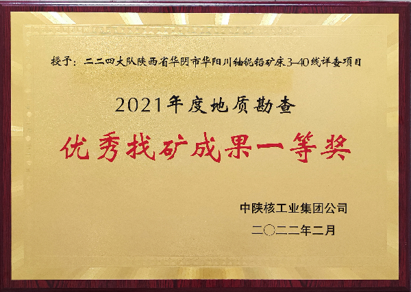 [2022-02-25]地质调查院《陕西省华阴市华阳川铀铌铅矿床3-40线详查》项目获中...2月24日,在中陕核工业集团公司召开的2022年地矿工作推进会上,公司《陕西省华阴市华阳川铀铌铅矿床3-40线详查》项目获集团公司2021年度“优秀找矿成果一等奖”,项目主要...