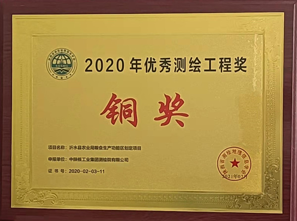 [2021-11-01]测绘院沂水县农业局粮食生产功能区划定项目荣获陕西省测绘地理信...近日,陕西省测绘地理信息学会评选了陕西省2020年度优秀测绘工程奖,中陕核工业集团测绘院有限公司沂水县农业局粮食生产功能区划定项目荣获优秀测绘工程奖铜奖。一直以来,...