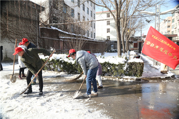 [2018-01-09]公司组织清雪除冰雷锋志愿服务活动近日,西安市区迎来2018年第一场大雪,瑞雪兆丰年同时也给广大市民出行带来了不便,1月8日上午,公司组织职工到小区家属院进行清雪除冰雷锋志愿服务活动。共计包括青年职工...