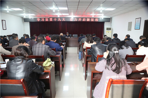 [2017-11-08]公司党委召开十九大精神学习宣贯大会为了更好地学习宣传贯彻党的十九大精神,11月6日下午3时,公司党委在六楼会议室组织学习宣贯党的十九大精神。公司两级领导干部、党员代表、党外知识分子代表参加了会议。公...