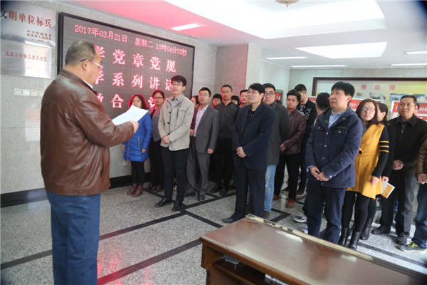 [2017-03-21]严肃换届纪律 弘扬清风正气为营造风清气正的换届环境,确保公司第十一次党代会换届工作顺利进行,3月21日上午,公司组织党员领导干部及党员代表共计60余人在办公楼一楼大厅举行严肃换届纪律承诺签名...