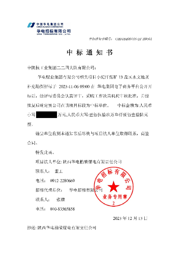 [2023-12-19]地质调查院成功中标华电煤业集团有限公司小纪汗煤矿13盘区水文地...近日获悉,地质调查院成功中标华电煤业集团有限公司小纪汗煤矿13盘区水文地质补充勘探项目。自该项目发布招标公告以来,地调院高度重视项目招投标工作,对投标文件、技术质...