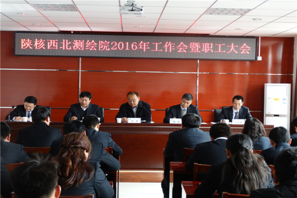 [2016-07-26]陕核西北测绘院召开2016年工作会暨职工大会2月19日下午,陕核西北测绘院召开了2016年工作会暨职工大会,会议由测绘院副总经理王伟主持。测绘院全体干部职工参加了会议,二二四大队有限公司工会主席、纪委书记吴杰,...