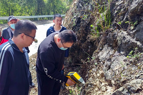 4月13日,王得权一行深入平利县瓦房沟地区勘查项目,查看了项目部驻地工作环境,听取了项目负责人董强强关于项目进展、安全生产等情况的汇报,并检查了项目野外工作原始资料及阶段性成果。随后检查组深入项目野外一线,实地考察了工作区矿产勘查工程、检查矿化异常点,详细了解项目的野外环境、工作进展,并与项目人员进行了深入交流。
