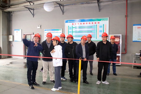 潘进礼一行先后参观了钼业公司氧化钼、硫酸及钼铁生产车间,在车间详细听取了王强关于生产运行、原料保障和产品销售等方面的工作介绍,郭金锁从国际国内钼行业双循环市场经营等方面进行了补充介绍。