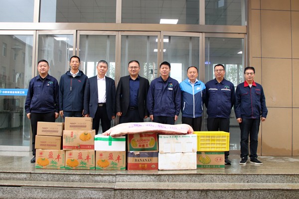 王得权一行为钼业公司广大职工送上了月饼、水果、大肉及新鲜蔬菜等节日慰问物品以及节日的祝福;随后,检查指导组深入硫酸车间、中控室和标准化厂房建设工地进行了现场安全环保检查。