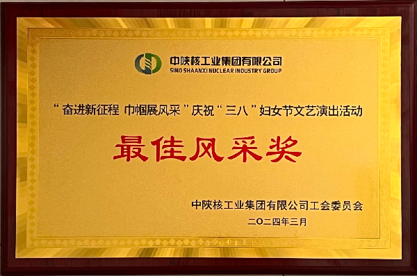3月7日,公司在中陕核工业集团庆祝“三八”国际劳动妇女节“牢记嘱托建新功 勇立潮头展风采”文艺演出活动中喜获“最佳风采奖”。公司党委书记、董事长郭金锁,党委副书记、总经理王得权,副总经理、工会主席胡祺现场观看演出。