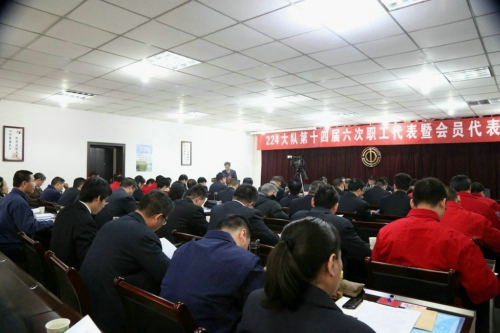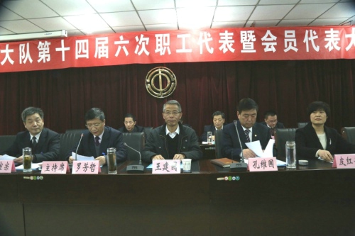 2月14日,大队第十四届六次职工代表暨会员代表大会在办公楼六楼会议室隆重召开。来自大队机关、辅助单位以及各经营单位的66位代表参加了大会。