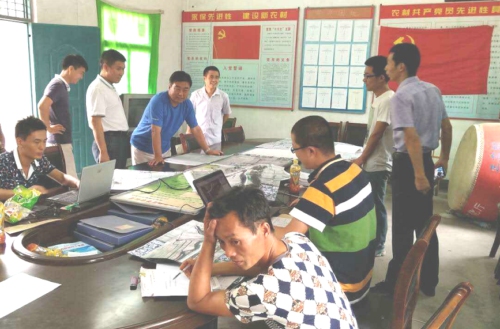 8月9日,正值周末。224大队有限公司总经理孔维国在测绘院总经理胡祺、总工程师方小龙等陪同下,到陕核西北测绘院武功县农村土地承包经营权确权登记调查及数据库建设项目检查指导工作。