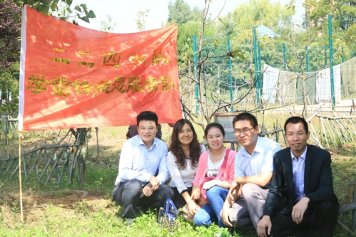 随后,大家来到公司在儿童村认领的爱心菜园,如今菜园已种上了果树,大家精心打理,有的修篱笆,有的拔杂草,忙的不亦乐乎。