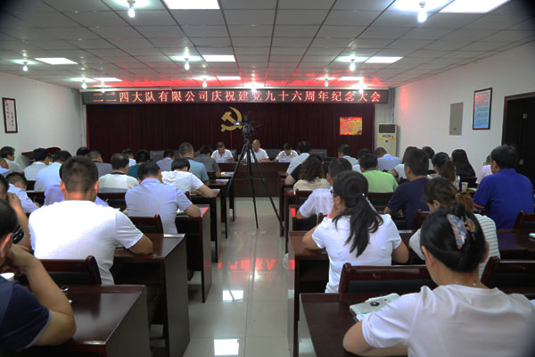 为庆祝中国共产党成立96华诞,6月30日上午,二二四大队有限公司党委在六楼会议室隆重召开纪念大会。公司纪委书记、工会主席刘海峰主持会议,驻地全体党员参加会议。