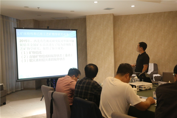会议首先由二二四大队副总工程师、华阳川项目工艺部部长胡进平介绍了项目概况;随后与会专家听取了北京矿冶研究总院关于华阳川项目的工艺矿物学研究、选冶试验研究——选矿实验室流程试验及冶金探索试验研究、选冶试验研究——扩大连续选矿试验设计方案、选冶试验研究——冶金实验室小型试验研究设计方案相关责任人的汇报;专家组审阅了设计书,进行了现场提问,深入研讨有关问题。经过认真评议,最终审议通过了项目第一阶段的成果验收和第二阶段的设计方案评审,并针对存在的问题指出了工作改进方向。