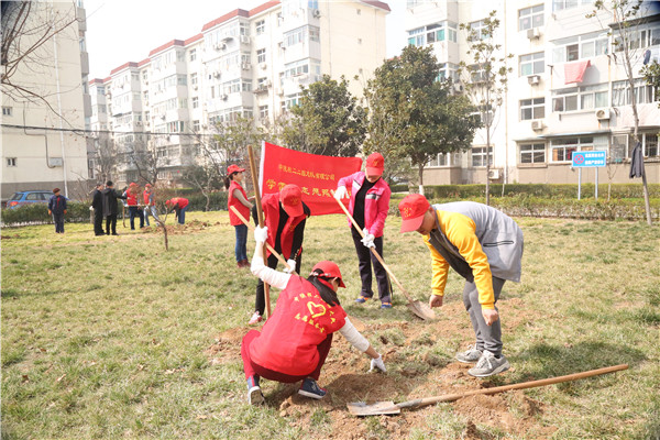 春回大地,万物复苏。3月12日,植树节来临之际,为提高广大职工志愿服务意识,倡导环保精神,共建绿色小区,公司学雷锋志愿者服务队在小区开展了以“志愿服务·绿化家园” 为主题的学雷锋义务植树志愿服务活动。