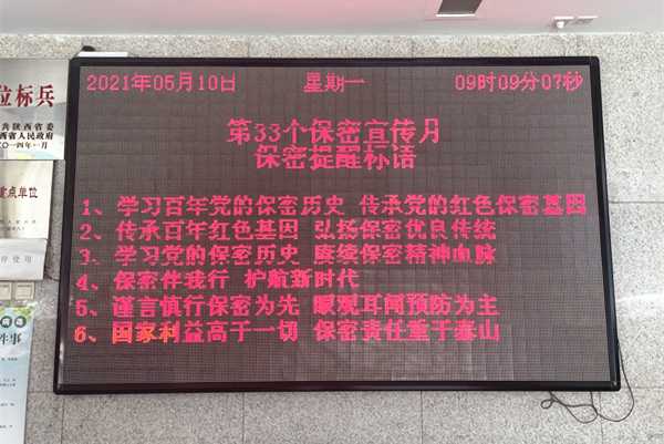 今年是中国共产党成立100周年,也是“十四五”开局之年。为全面落实陕西省保密委员会、省国家保密局和集团公司工作部署,切实提升领导干部以及涉密人员的保密意识,按照上级工作安排,公司开展了第33个保密宣传月系列活动。