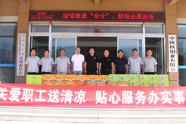 赵铜飞一行实地检查了各生产车间,并为公司广大职工送上了茶叶、清凉饮品、蜂蜜、绿豆、银耳、西瓜等送清凉慰问品。赵铜飞深切嘱咐道,要全力做好职工防暑降温及安全保障工作,从职工群众的自身安全与身心健康出发,切实保障全体职工切身权益,确保队伍和谐稳定。