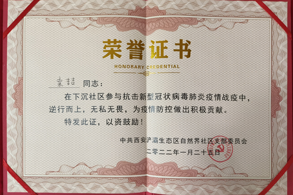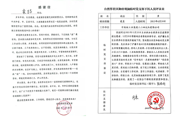 寒冬暖心,分外振奋。近期,公司抽调支持西安市疫情防控工作的下沉党员、志愿者们陆续收到了多封来自下沉所在社区党支部、疫情防控指挥部和居委会的感谢信及荣誉证书,这是对公司28名全体下沉党员和志愿者安全、规范、高效做好各项社区疫情防控工作的充分肯定和高度赞扬。