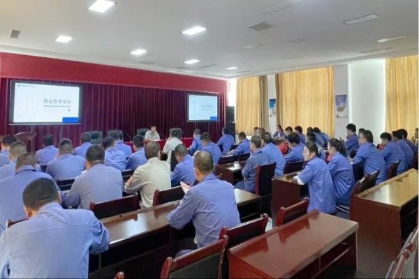 在首期培训会上,王强围绕什么是精益管理、为什么开展精益管理、如何开展精益管理及精益管理概括四个方面进行了系统的讲解,深度诠释了精益管理对支撑新材料公司战略发展的重要性,为进一步推动新材料公司深化落实精益管理工作打下良好基础。在第二期培训会上,刘振川结合新材料公司实际,深入浅出地讲解了推行精益管理工作对生产经营工作的指导意义,对精益管理理念融入生产经营全过程夯实了坚实的理论基础。郑银龙在绩效管理培训中,采用互动交流的方式对各部门/车间的绩效管理工作落实情况进行了解,并对绩效管理工作总体思路和实施路径做了详细说明。石伯雄就目标管理??榈木咛迨凳┕桃约澳勘旯芾碛刖婀芾淼墓叵到辛耸崂斫步?。车伟锋对公司各流程的流程泳道图以及流程管理中的流程标准化、流程优化做了详细介绍。李飞龙指出了现场管理工作中存在的不足之处,并给出了具体的工作要求及建议。