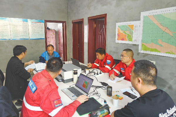 杨夏一行首先为各项目一线职工送去了大肉、蔬菜、水果和饮料等慰问品,认真查看了项目驻地环境,了解了职工日常生产、生活情况。随后检查组认真听取了各项目负责人关于项目概况、施工进度、阶段性成果、安全生产措施及后续计划的详细汇报。汇报结束后,检查组对项目进展、安全管理、现场作业、风险管控等方面开展全面检查,重点检查了安全生产各项资料及台账,并下发安全环保督导检查表。最后,慰问组奔赴野外一线,仔细考察工作区地形地貌与交通条件,抽检部分野外作业成果质量。针对检查中发现的项目建设、工作计划、安全生产等方面的问题,检查组与项目团队展开深入研讨,现场提出具体可行的解决方案与改进建议。