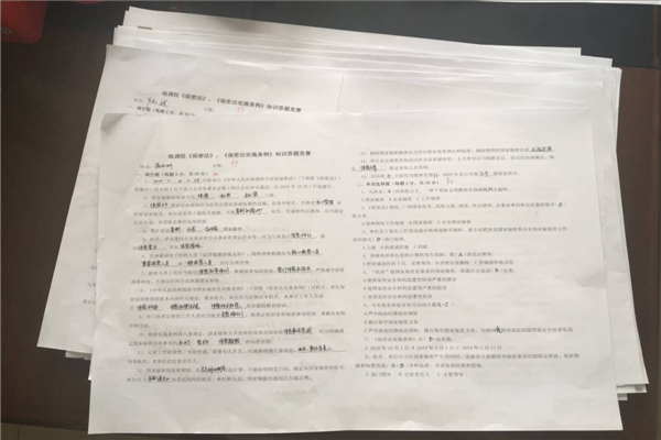 为抓好保密教育,深化保密意识,强化保密责任,5月8日,地调院开展了“《中华人民共和国保守国家秘密法》《中华人民共和国保守国家秘密法实施条例》知识答题”活动。地调院全体职工参与此次活动。