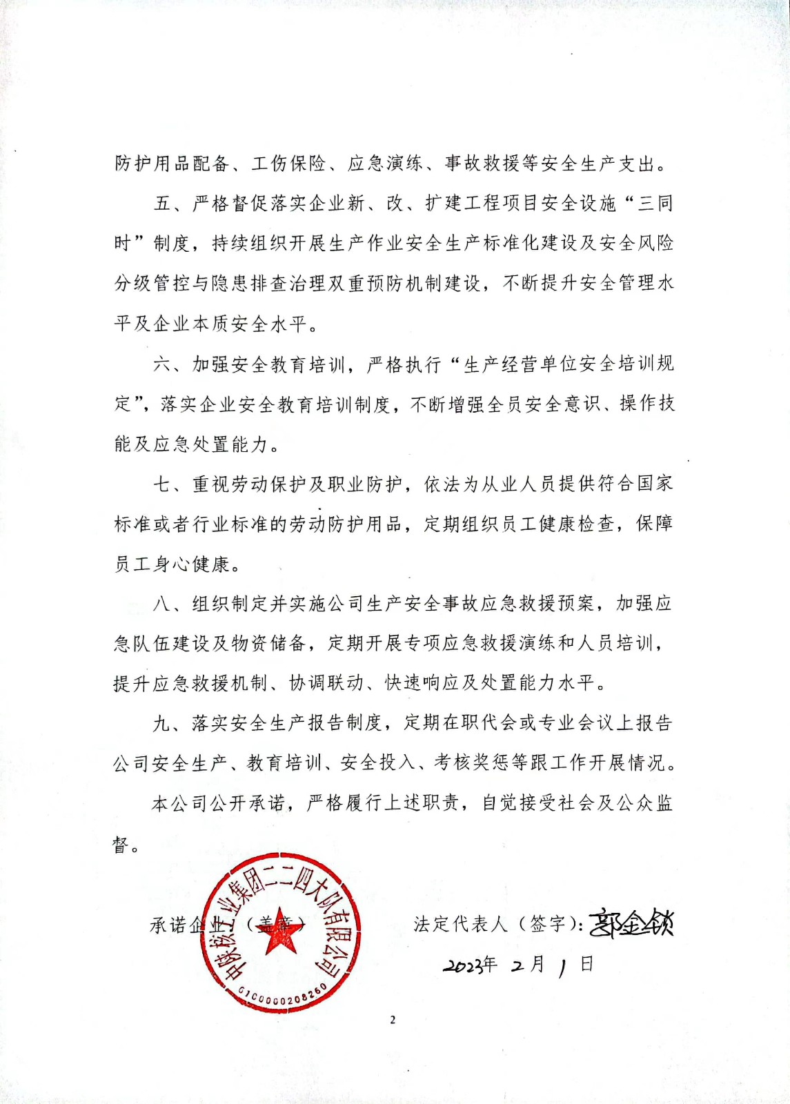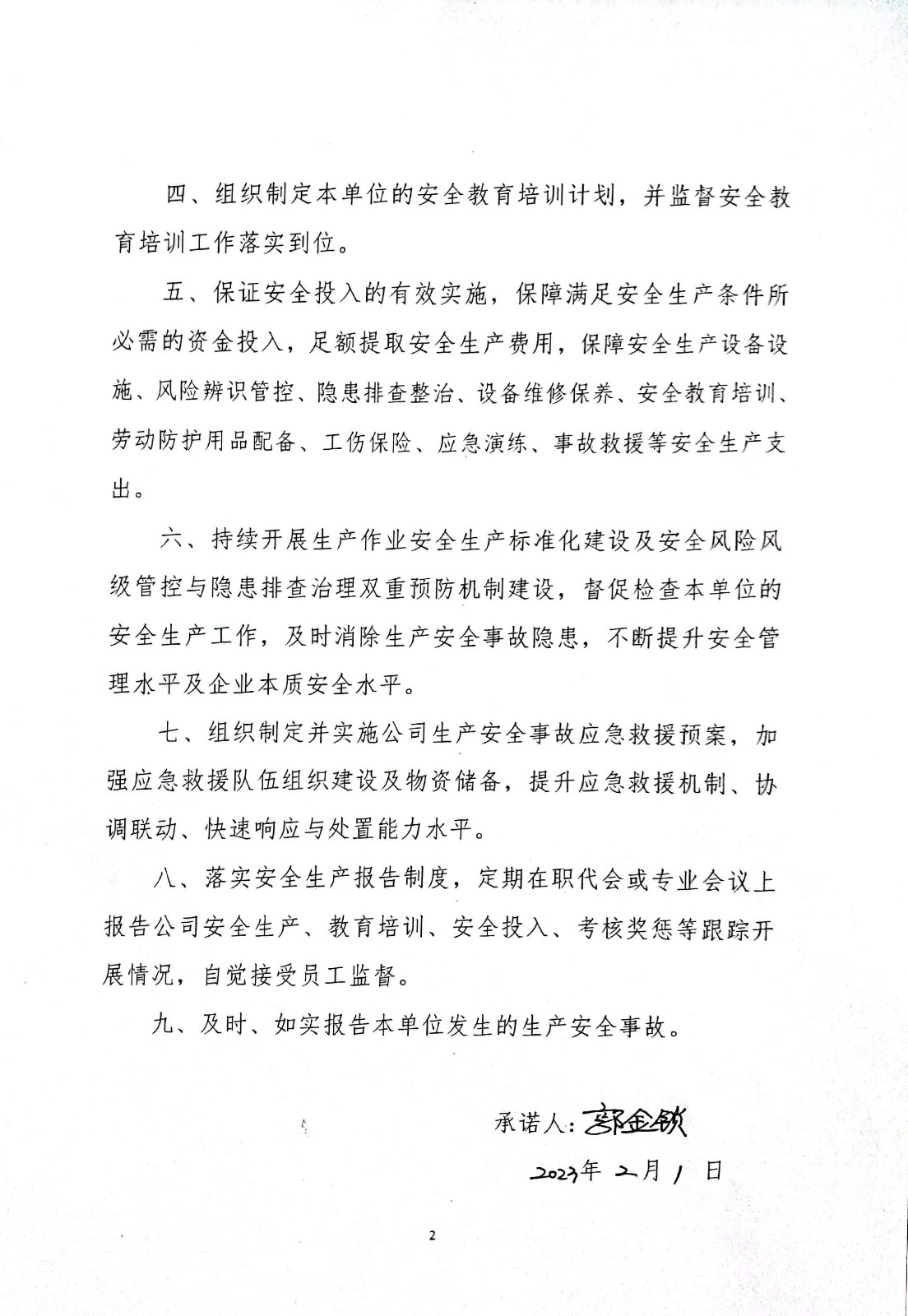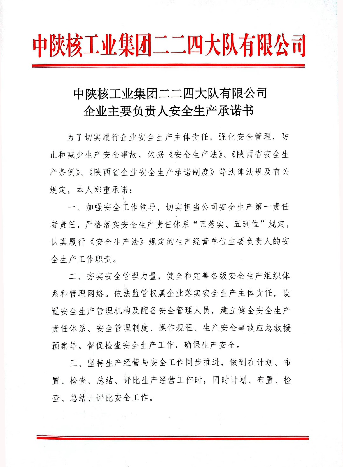 公司签订企业安全生产承诺书和企业主要负责人安全生产承诺书