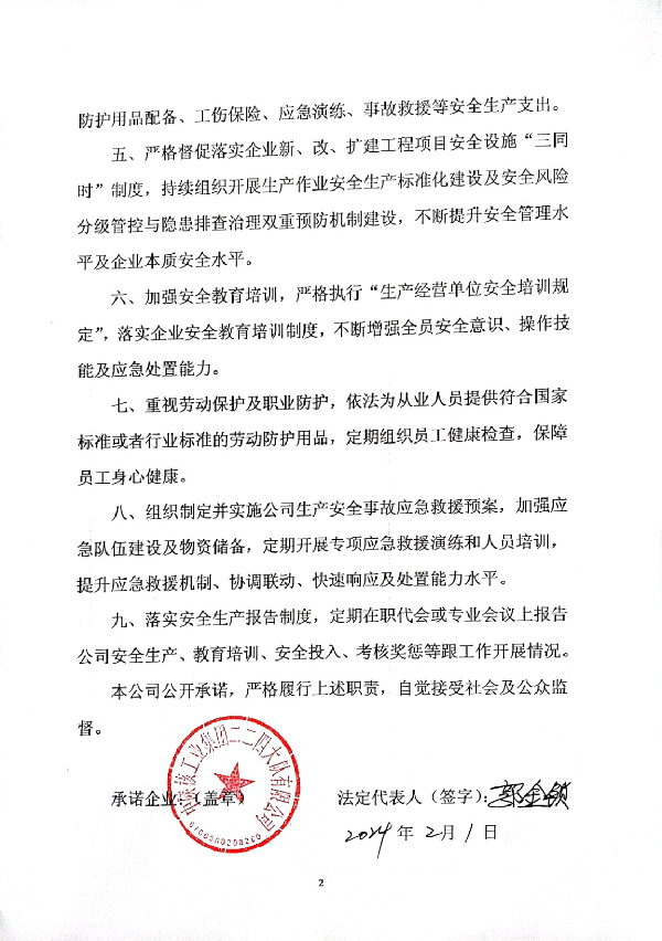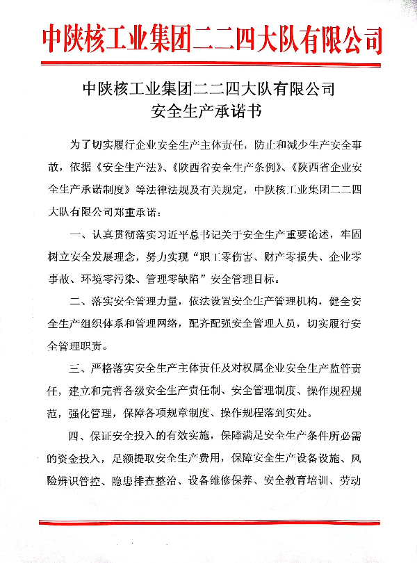 中陕核工业集团二二四大队有限公司安全生产承诺书