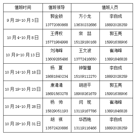 2.工作组人员在值班期间要认真负责,确保值班包驻期间单位安全、环保、治安、消防、防疫等各项工作稳定。